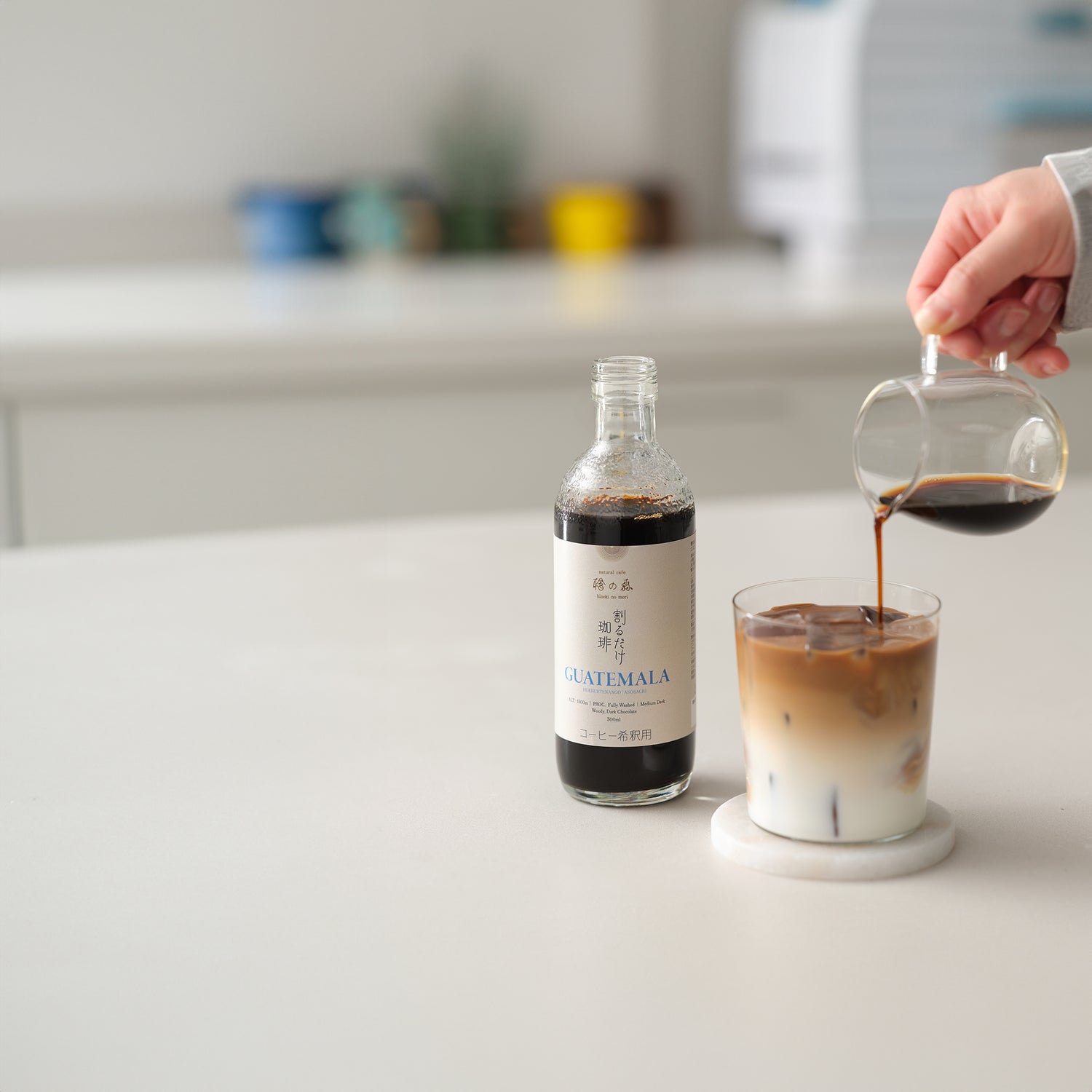 牛乳で割ることによってカフェラテやホットカフェラテとしてお楽しみいただけることはもちろん、水やお湯で割ることによってアイスコーヒーやホットコーヒーとしても楽しめることにこだわって作りました。