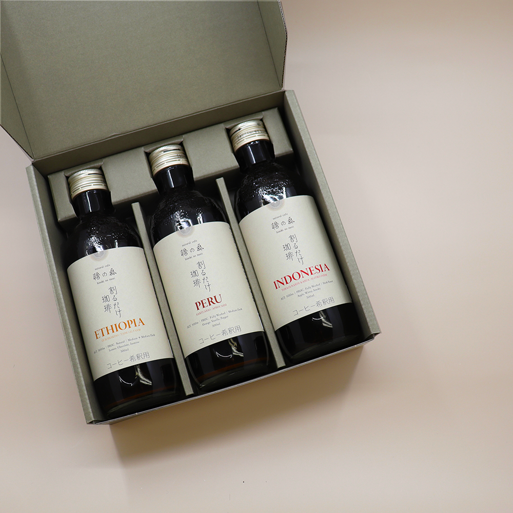 エチオピア、ペルー、インドネシア。それぞれ異なる風味の個性を持つ3種の豆を、それぞれ最適な焙煎で丁寧に抽出。贈られた人が自分の“好き”を見つけられる体験型のギフトです。