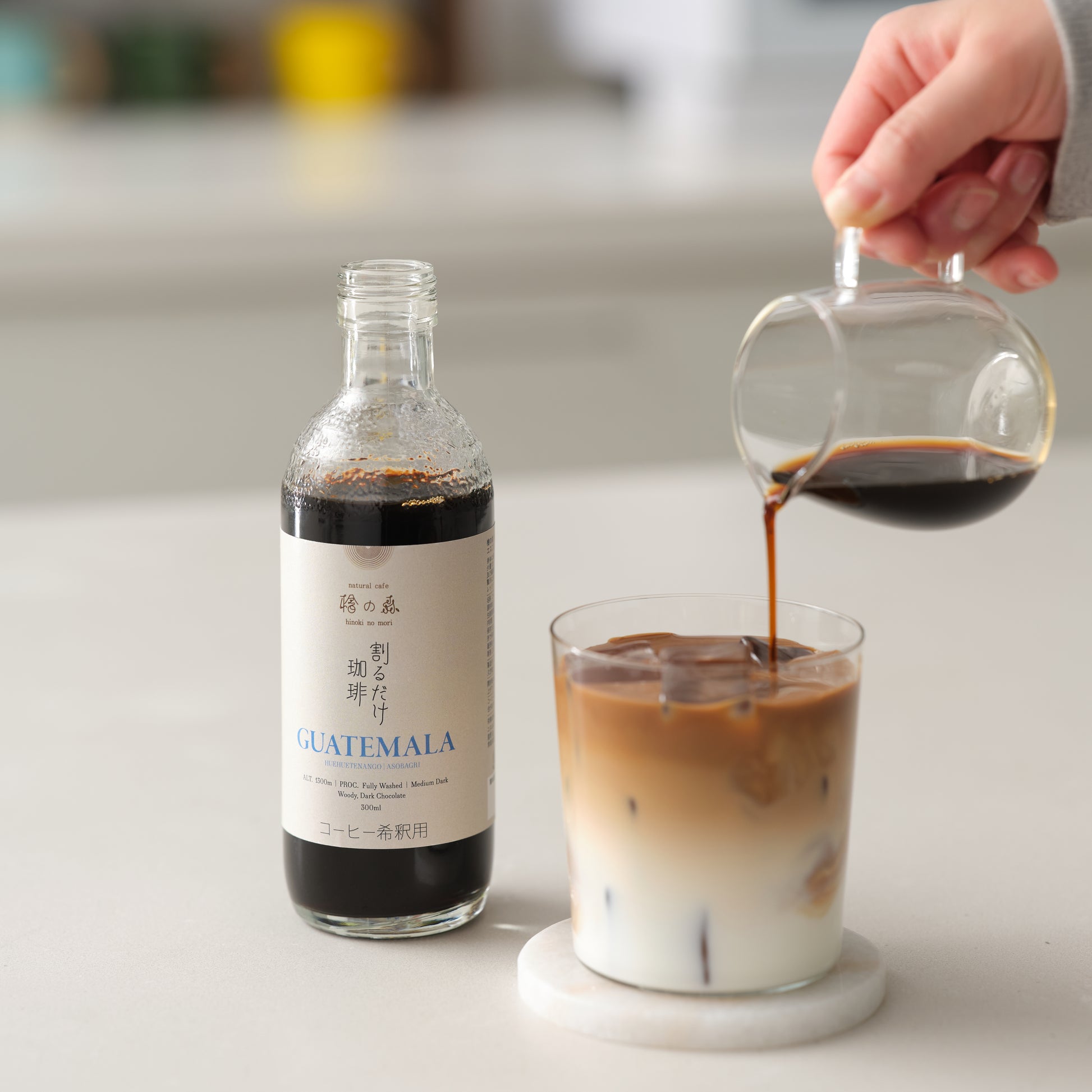 牛乳で割ることによってカフェラテやホットカフェラテとしてお楽しみいただけることはもちろん、水やお湯で割ることによってアイスコーヒーやホットコーヒーとしても楽しめることにこだわって作りました。